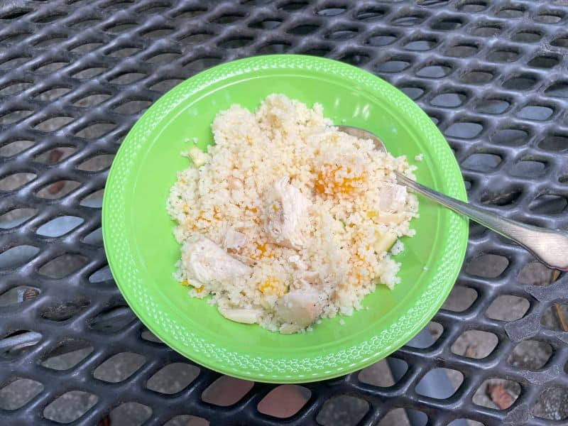 We are huge proponents of making items ahead of time when possible. This gives us more time to be lazy around the campfire…or have something ready to eat as soon as we get back from a hike. When it is really hot outside, our Mandarin Orange Chicken Couscous is a light and filling meal to enjoy.